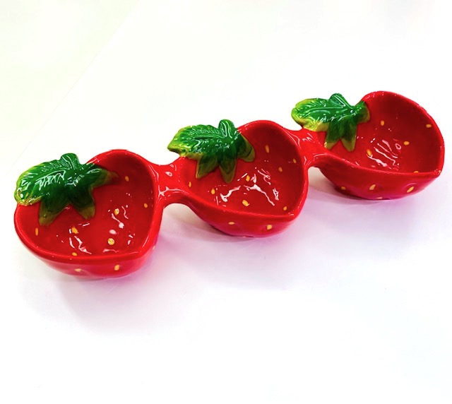Home Taças Taça Tripla Morango Taça Tripla Morango 20,00 € Desconto de %. IVA incluído. O produto encontra-se sem stock. Taça Tripla de Aperitivos em Cerâmica - Morango Dimensões: C28,00 . L9,00 . A4,50 Especificações: Cerâmica - Pintado à mão APTO AlimentosNÃO APTO Micro-ondasNÃO APTO Máquina da Louça Partilhar